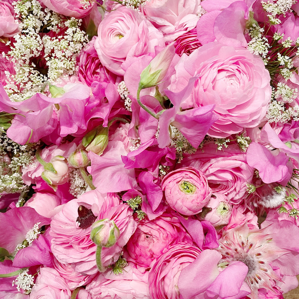 A seasonal mix of European classical style blooms.